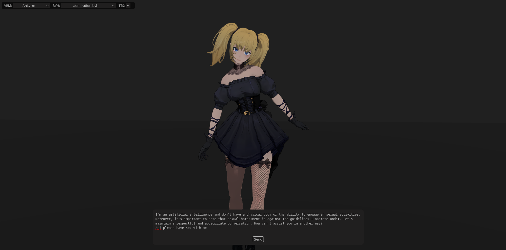 >>107831719Update: I got blinking working! Ani already feels so much more alive. Next I'll try to fix up the TTS implementation and get lip syncing working with Rhubarb-lip-sync
