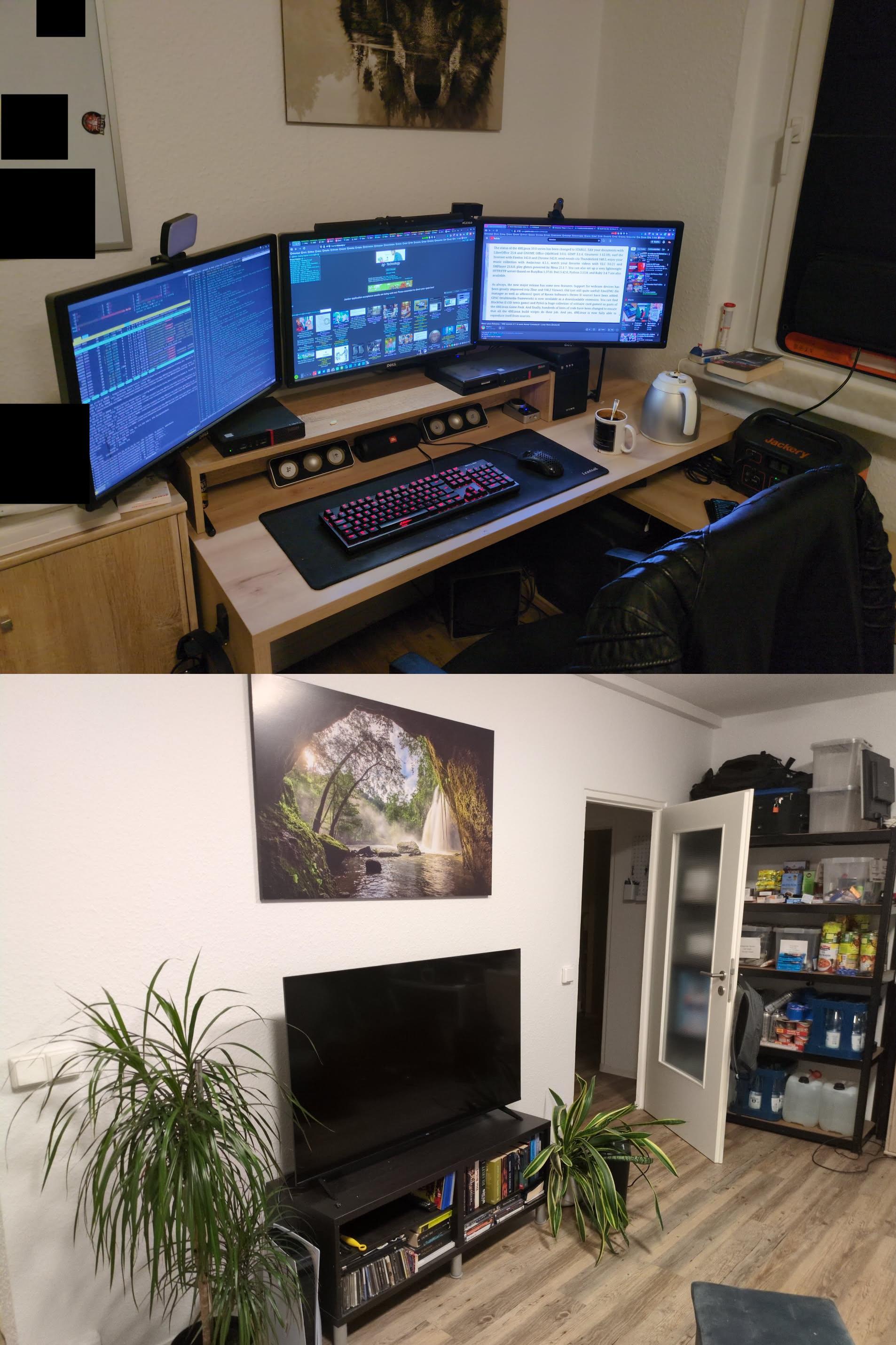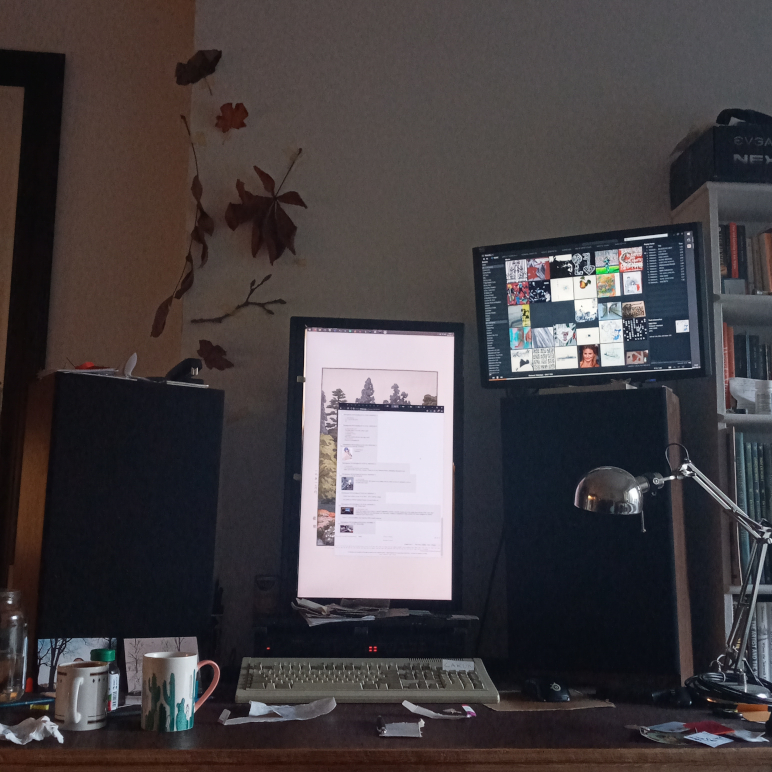 >>107830091size of bookshelf and sideboard? i say go for a 60cm depth desk and switcharoo the bookshelf away from the door, more fengshui. if side board is thin enough, can side that into side of desk (assuming 40cm), giving you a free 'side' table for the powerpoint.