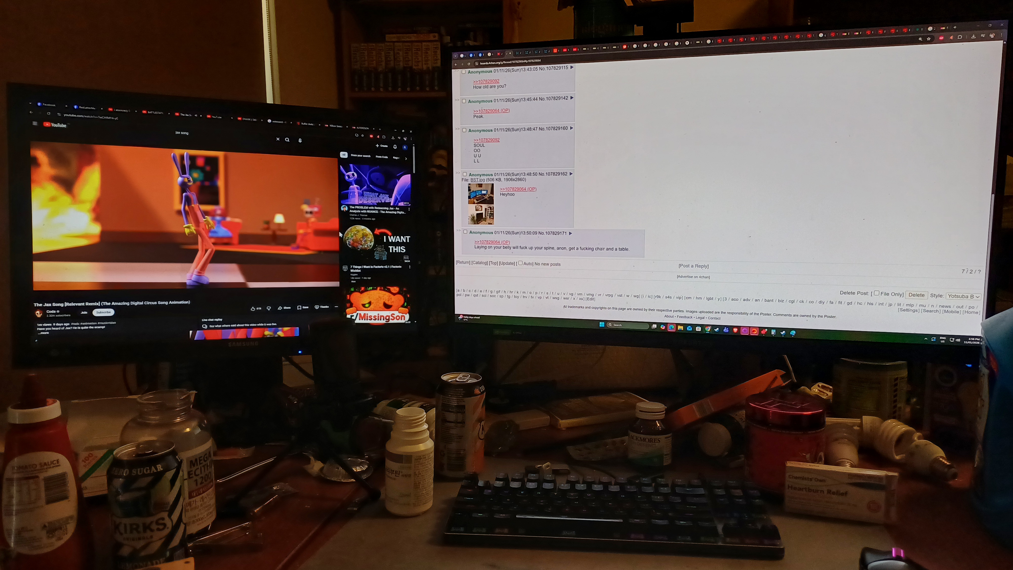 >>107829092Overdose-levels of sovl! Is the revolver on the left real, or just a keychain; is it for when the feds show up? >>107829162Nice pantry, I bet you have some yummy foods on there.