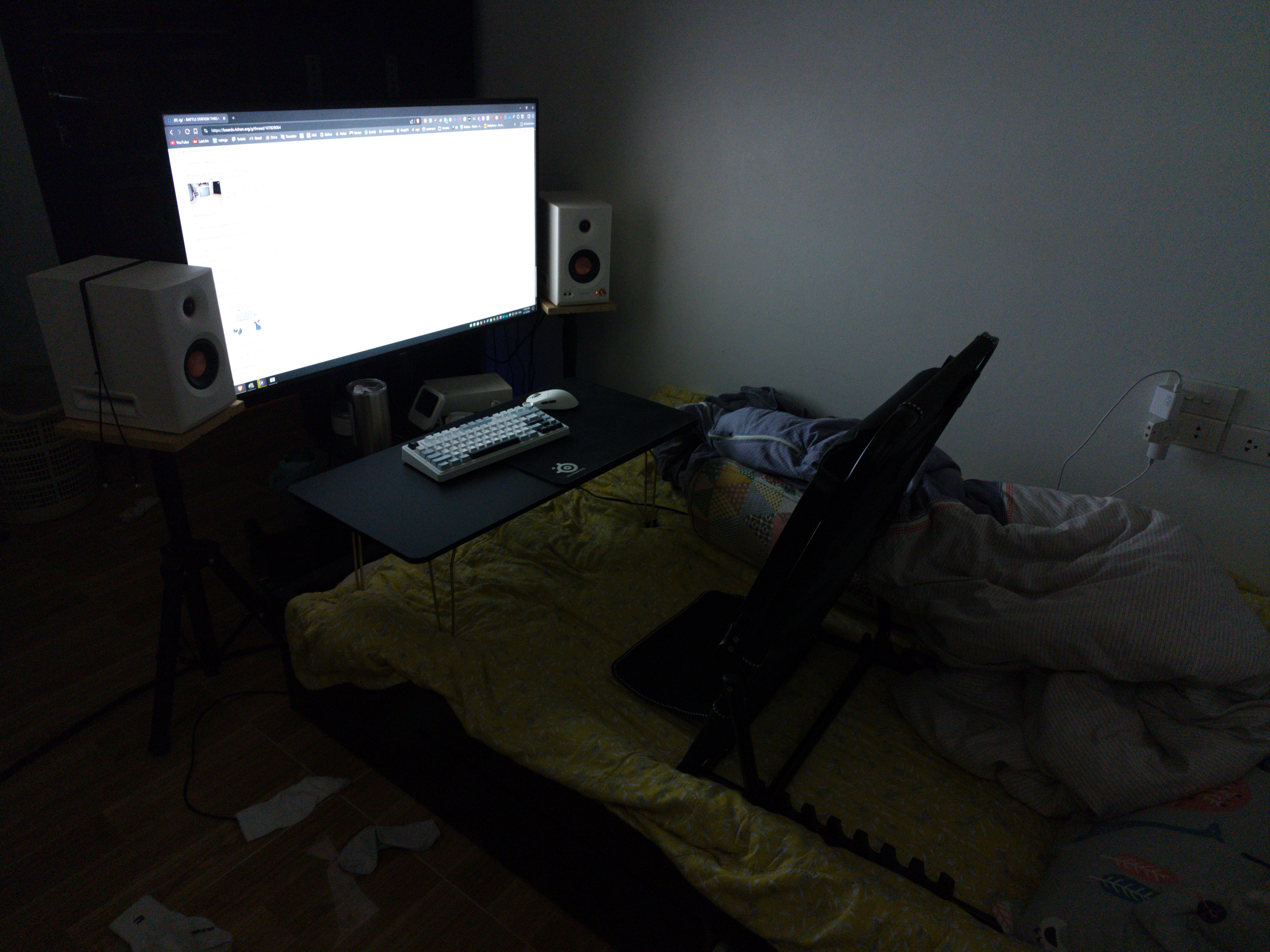 planning my tight space, 80cm would be good, but would make the chair a bit tight wouldn't it?80cm is what the back of my 32" monitor to the edge of the table is right now, Moving it even 10cm closer is awful. But I had a thought, monitor arms. the actual screen is 60cm from the edge of the desk, so a 70cm desk with monitor arms would be fine, wouldn't it? or is there enough room for the 80cm desk?