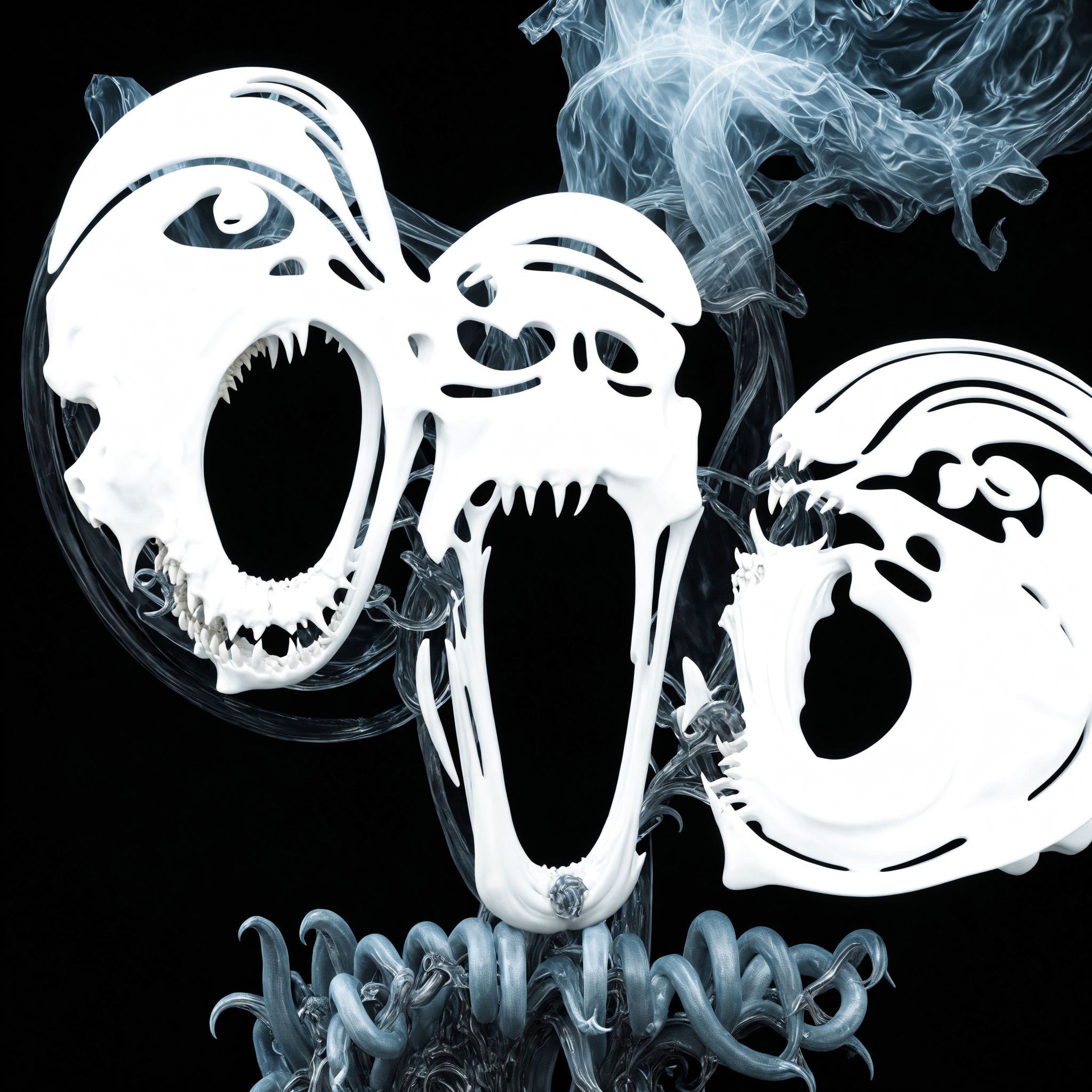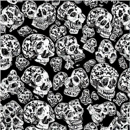 >>107837996A 1-bit monochrome digital still life rendered entirely through high-contrast dithering patterns. At the center of the composition is a human skull, viewed from a three-quarter angle, with its surfaces defined by a mix of Bayer and Floyd-Steinberg dithering to create the illusion of rounded bone and deep, shadowed eye sockets. To the left of the skull stands a tall, slender hourglass with fine pixelated grains of sand collecting in the bottom bulb. To the right, a single wilted tulip droops downward, its petals textured with a stippled gradient. The lighting is a sharp, simulated directional source from the upper left, casting a harsh, cross-hatched shadow across the dark, flat surface. The entire image is composed of stark white pixels on a solid black background, mimicking the aesthetic of a retro Macintosh or early graphical user interface. The overall image has a gritty, digital texture with no gray tones, relying solely on pixel density to convey depth and form.