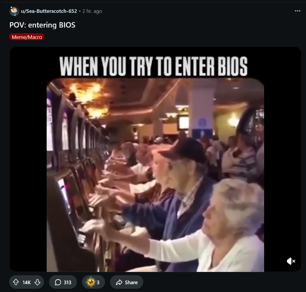 That is something that always pissed me off about new UEFI era shits. It seems so retarded and backwards. In the old days you simply hit DEL once and it would work right away.