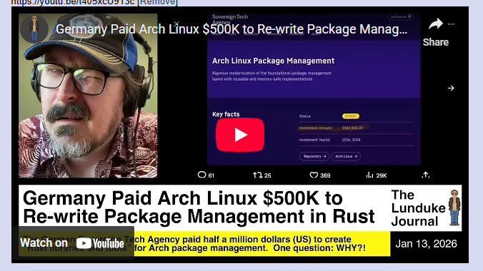 >>107859471>>107859480Yeah I'm just struggling to understand why the globohomo German/EU government is paying Arch Linux to put Rust into its package management https://youtu.be/t405xcU913c