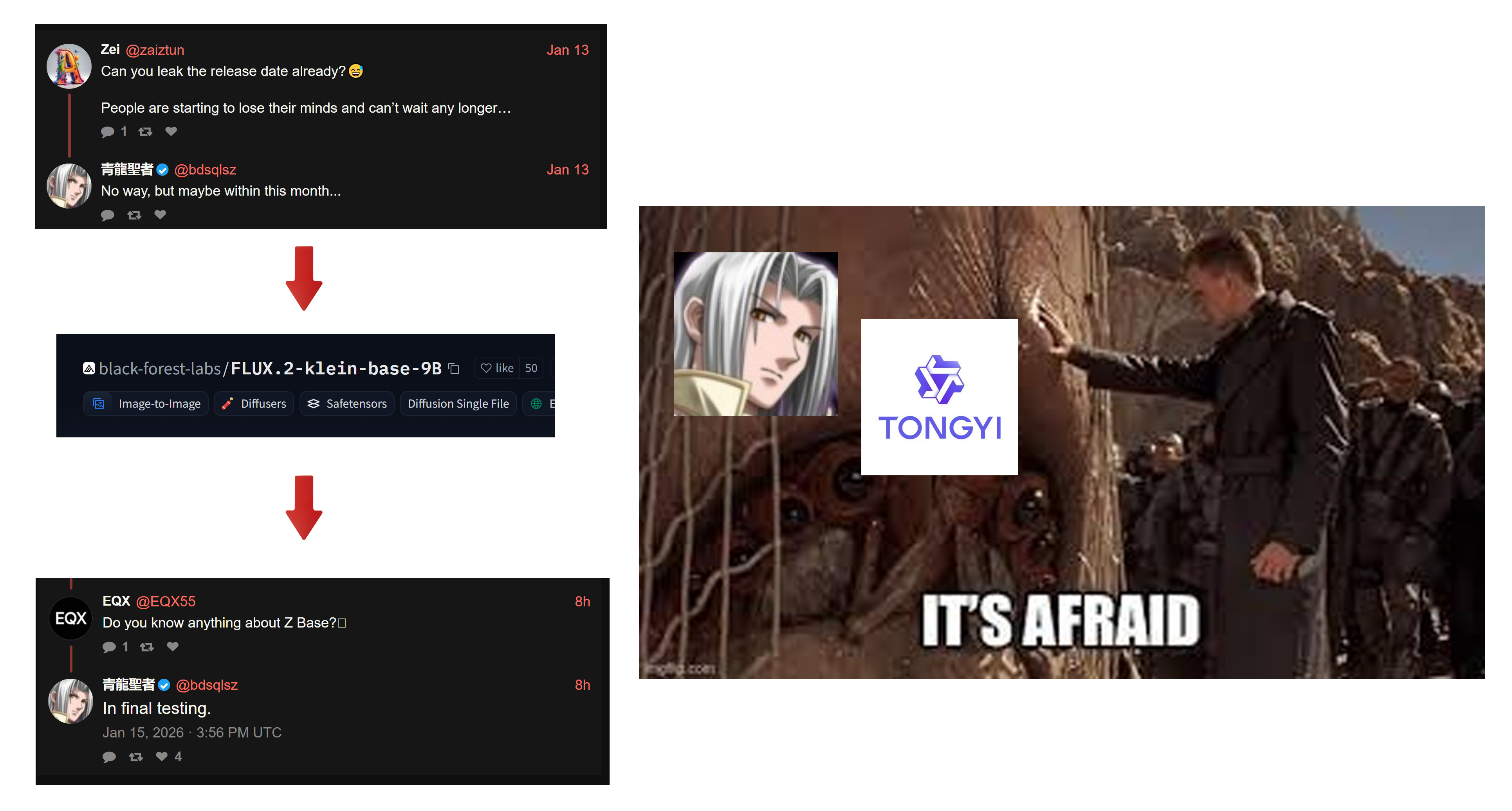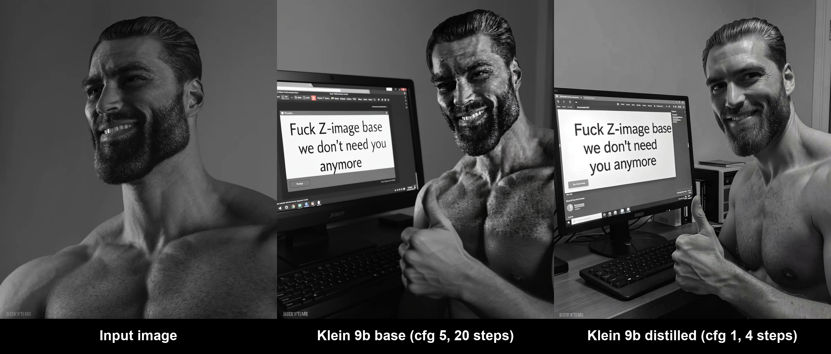 >>107875955>>107876069>FLUX.2-klein-base-9B Yeah didn't even see this kek. BFL has now truly BTFO'd the Chinks.Why wait for Z base anymore? Z is too rigid and there's no diversity. Also that confirms my suspicions about "Z base", it's probably also based off a distillation of a larger model and named "base".
