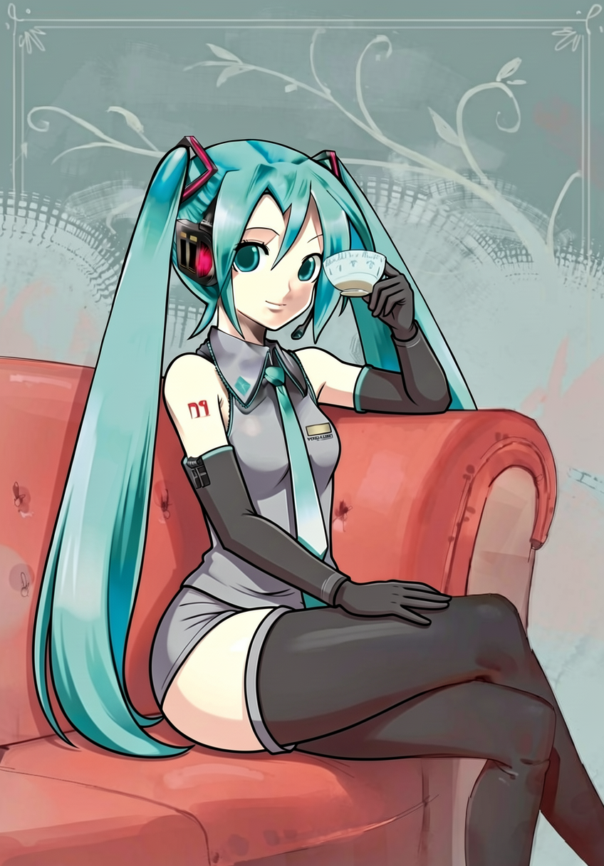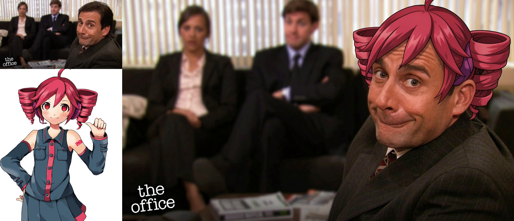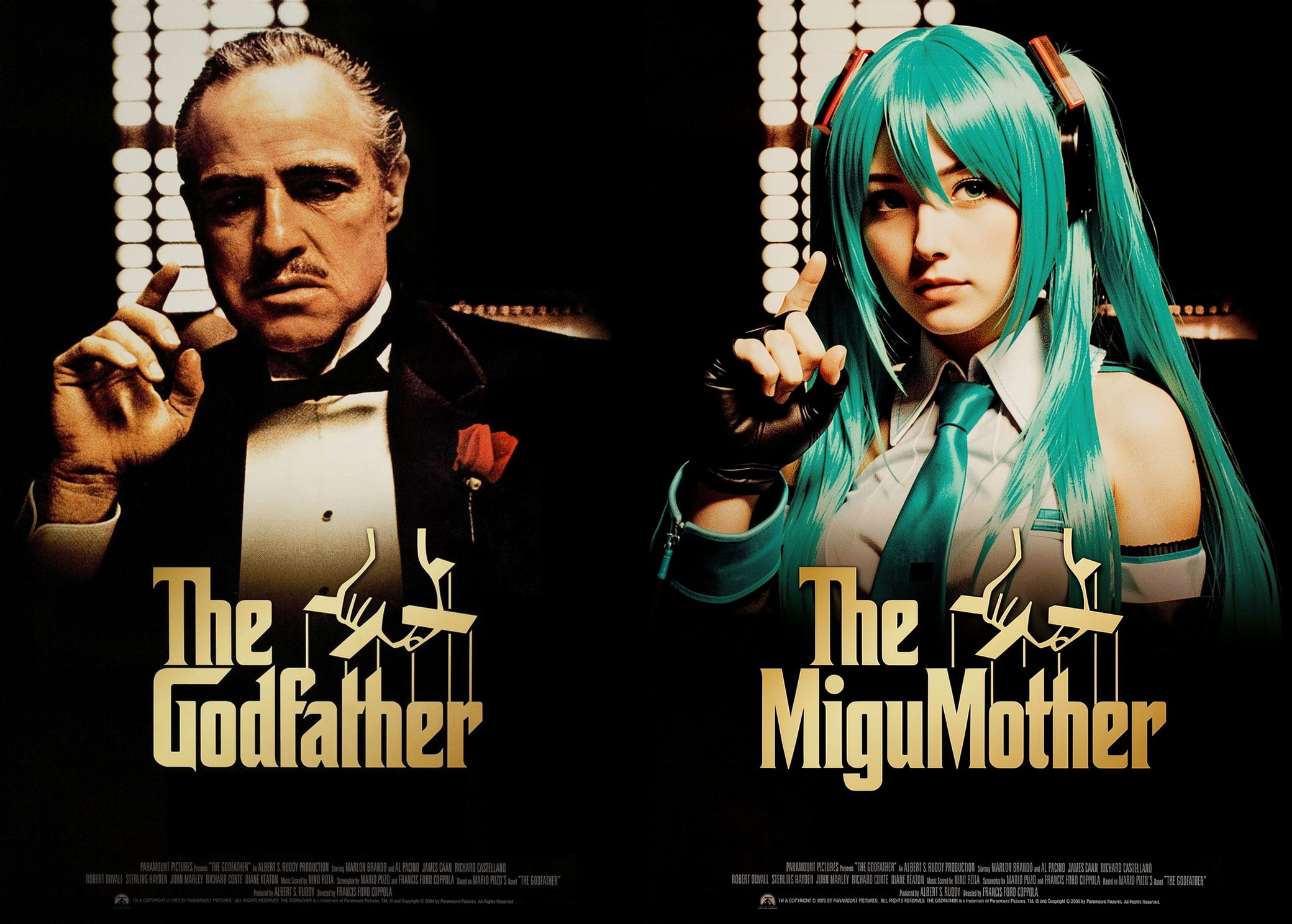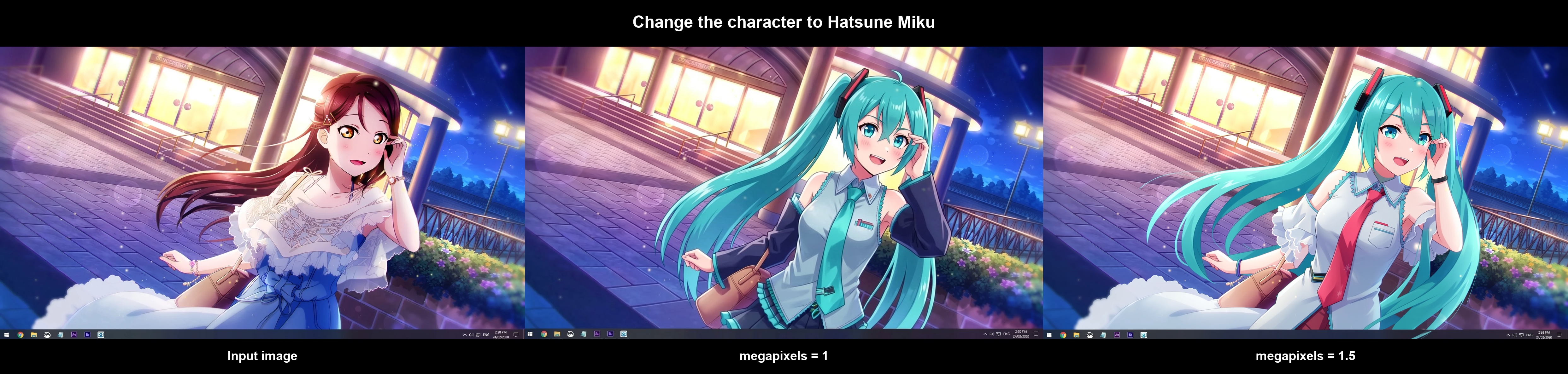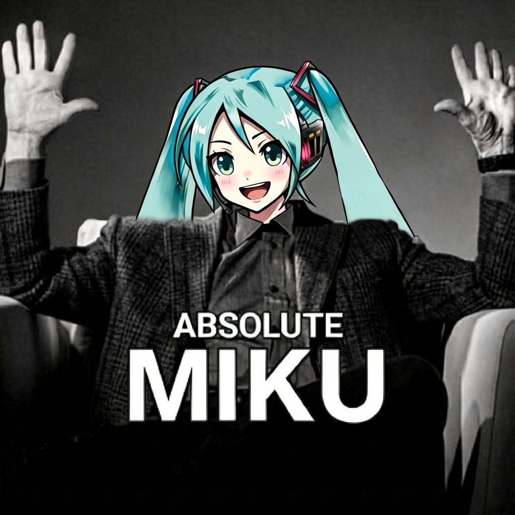replace the face of the man in image 1 with the face of the anime girl in image 2. change the text "cinema" to "MIKU".heh, thats pretty good.