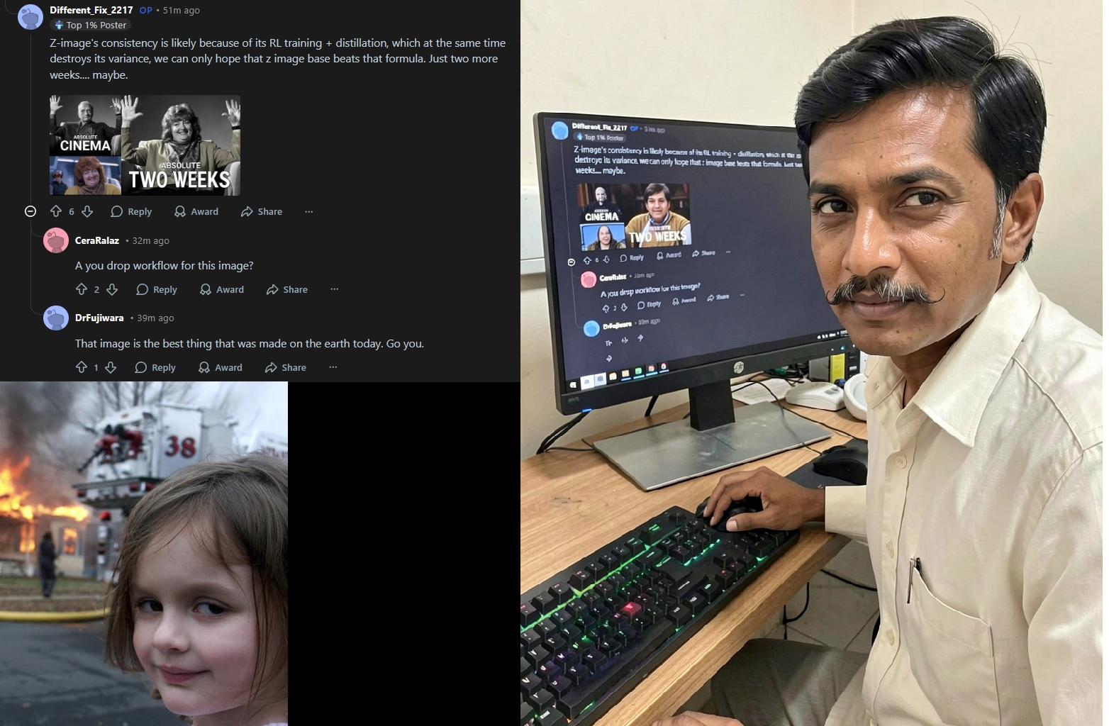 >>107876195wait till they see that z image base does the same thing since it wont be RL trained. People have no idea how these things work