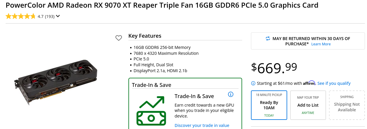 >>107887080There is definitely some weird shit going on. I went to microcenter the day after christmas and almost all of these cards were below or at MSRP. I got this 9070xt for $530, the very next day it was listed at over $100 more. I remember reading a report some time late last year about how retailers weren't restocking RAM because it sat on their shelves for too long, then a few weeks later we get the entire "ram shortage" story, and now all the ram is much more expensive, and yet it still is sitting on retailer shelves. I get something being scarce and thus requiring a higher price, like during covid when GPUs were going twice the MSRP because you just couldn't find them anywhere, but now all of these things are readily available, and yet we are still seeing covid era pricing.