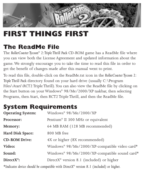 >>107894292512mb of ram is the same requirement as RCT2 has with all the DLC. See:https://store.steampowered.com/app/285330/RollerCoaster_Tycoon_2_Triple_Thrill_Pack/