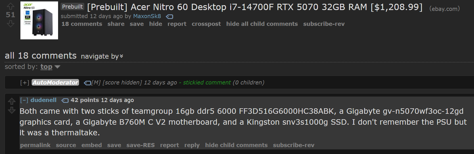 >>107896957NTA but that doesnt really matter. acer probably only made the case for the prebuilt