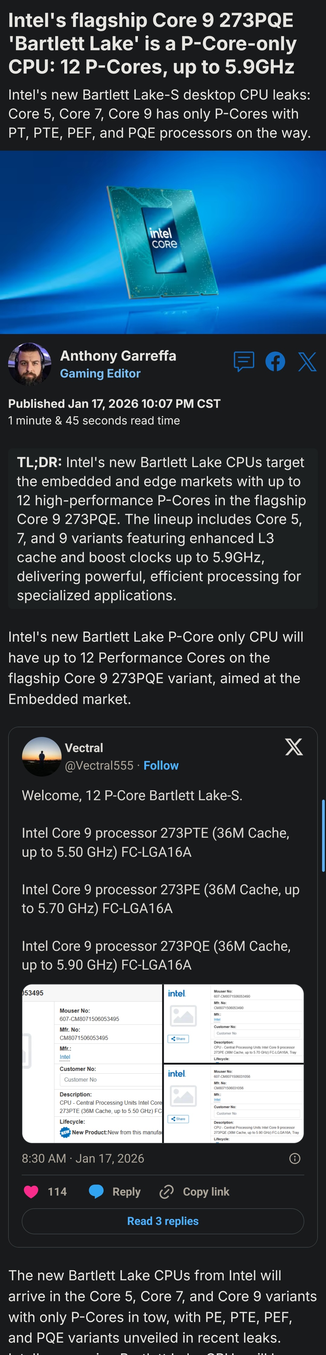 FUCK. The 10 and 12 core Bartlett Lake cpu's are coming but will have no consumer release and no Bios support for consumer MB's. Fucking hell I have been waiting for over year for it. And decided not to upgrade to AM5 since I already have an LGA 1700 board. I missed a ram upgrade I was going to do because of waiting.Fuck you Intel. Seriously fuck you. I was loyal with AMD until I went with LGA 1700 instead of AM5 back in 2022. I bought AMD during the FX years and decided to give you the chance. And you fuck me like this instead. Never again. Should have never abandoned AMD. I guess I deserve that for betraying AMD.