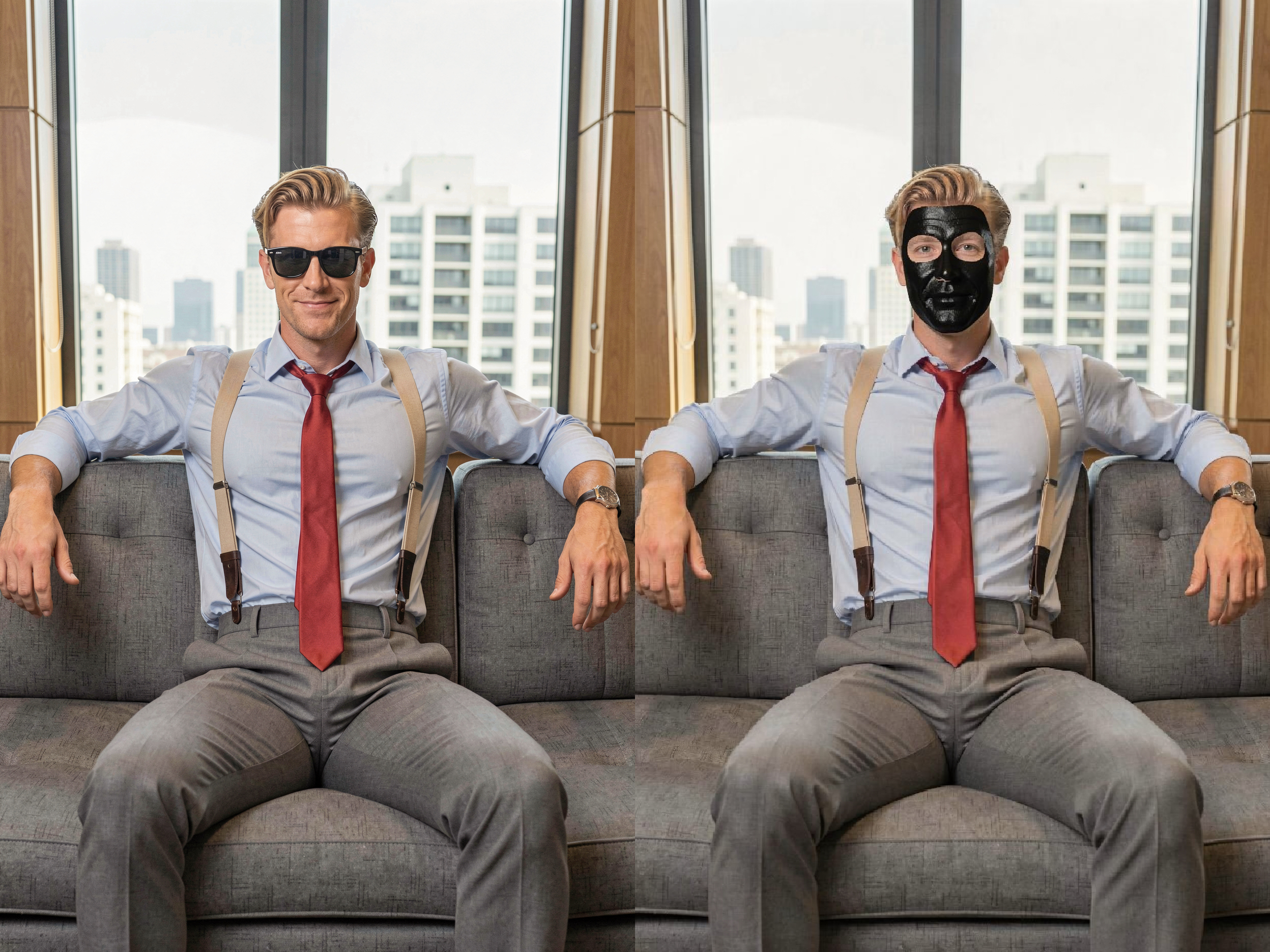 change the face of the man in image 1 to the face of the man in image 2.literally me-in