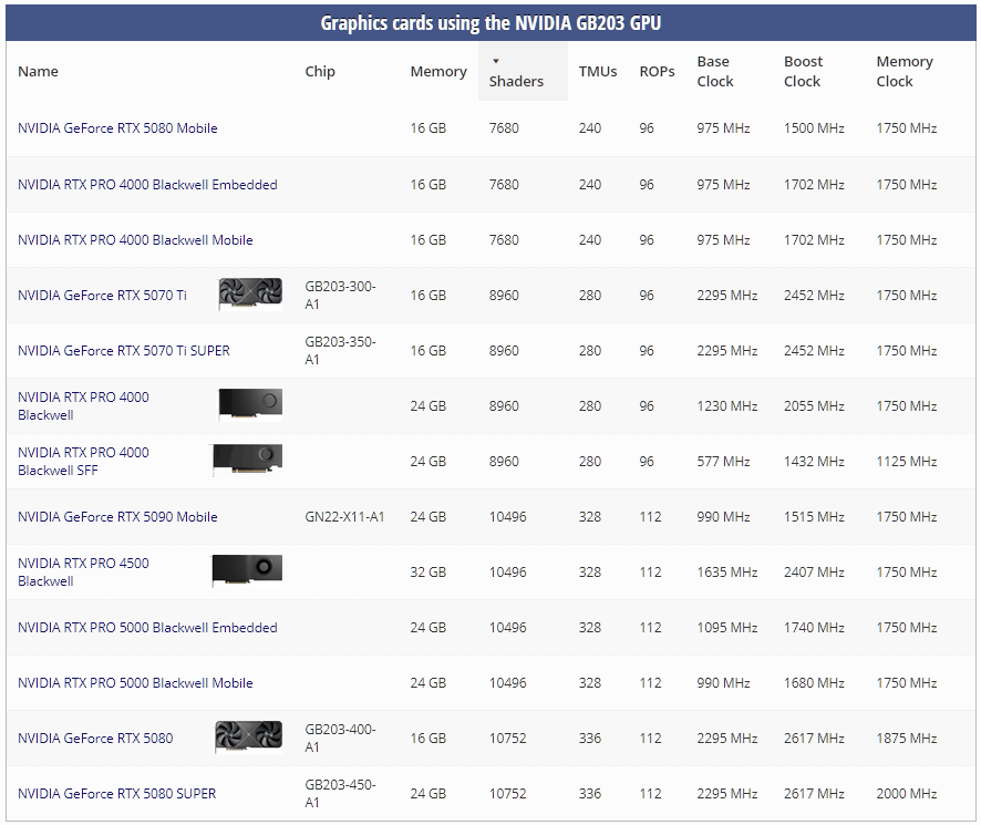 >>107901143As long as NVIDIA continues to order GB203 GPU production from TSMC, there will be defective dies to make 5070 Tis with.I doubt workstation demand for NVIDIA RTX PRO 4000 Blackwell is enough to use all those cut-down chips.