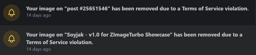 >>107905528One of the good very good lora makers had his account banned for a while because his weight slider lora was supposed to "promote anorexia".Civitai is getting big enough to amplify safetyism through the attraction of retarded moderators.