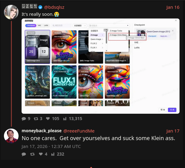 >be me>still using Flux 2 dev>because I like idling the day away>waiting for 200 second gens while surfing 4chan/pornthe good life