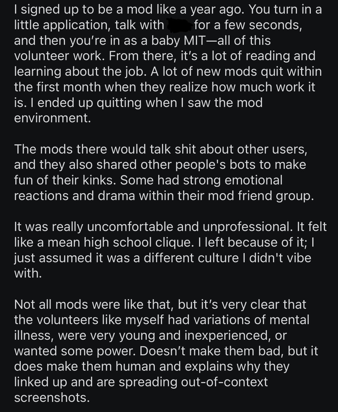 >>107917969I'm not a newnigger nor a spitefag. I don't go out of my way to snitch to the owner of sources or anything like that, and I've been around since AI Dungeon, enough to let an account get banned.It's unfortunate that baiting street shitters share the same sentiment, though if only to bait, but still.You've seen this thread. For the past few days, weeks, months. Even year. And it's utter shit, it's nothing like it was before.Why exactly... would you want to give to this shitty 'community'? If you've got a source, keep it to yourself, and eat good. Throwing it away to these poor sons o' saps won't do you any good.>>107917981...Sure, but it wouldn't need to be fixed in the first place if it was gatekept or just kept to himself.