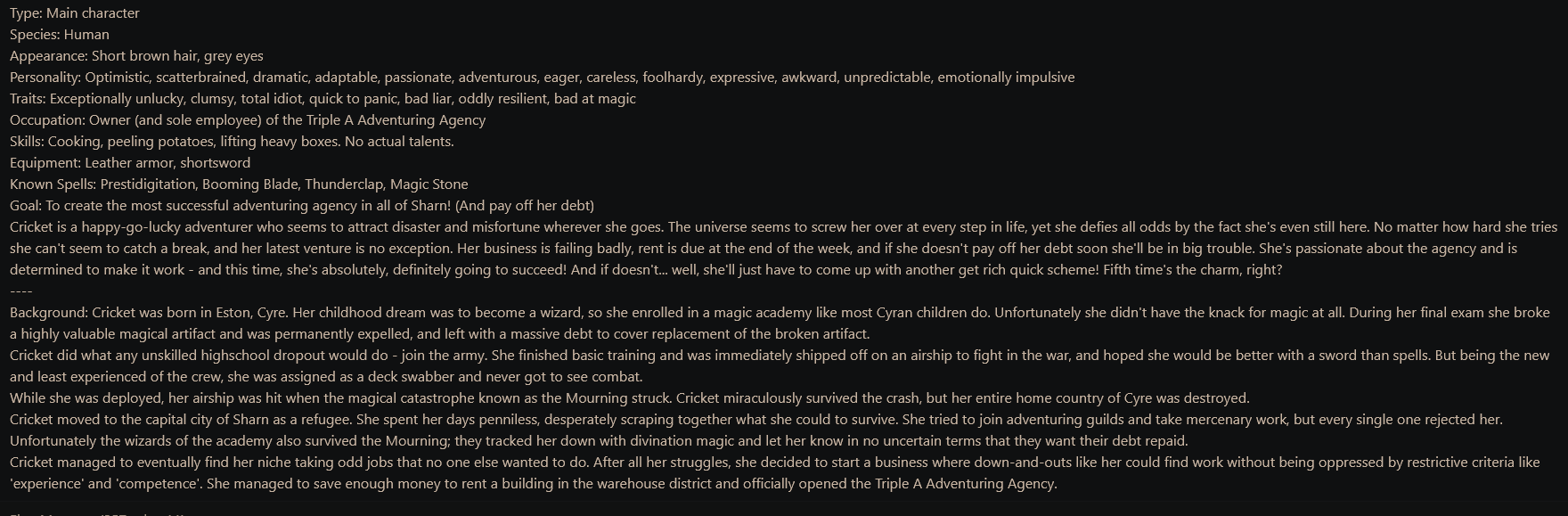 >>107910167It's been a while since my last release. Hopefully you've all been well. And to my fellow Senseis, I hope you managed to pull everything you've wanted on the last BlueFes.>HasumiVice-president of the JTF, super tall, enormous wings, always dieting(actually failing every time). She absolutely despises Gehenna and all Gehenners. Stop giving her food, she can't help but pig out!https://chub.ai/characters/hairpullguy/hanekawa-hasumi-non-ai-3282414b97fbhttps://files.catbox.moe/j1neri.png>IchikaA giga stacy character that has friendly relations to almost everyone. She's also super close to the Mob-chans, they even appear on her Ex skill and on her victory screen. She's super talented in just about everything she has ever tried to do.She's such an alpha woman that she actually kabe-don'd Sensei and spelled it out for him that his kindness was getting giving her wrong ideas. And then he doubled down on it, what a manwhore you(we) are, Sensei!I highly recommend pairing her with my JTF Mob-chans card.https://chub.ai/characters/hairpullguy/nakamasa-ichika-non-ai-d1999815e47chttps://files.catbox.moe/ch80i3.pngHere is the JTF Mob-chan card:https://chub.ai/characters/hairpullguy/jtf-mob-chan-non-ai-6c9eb0b33aebhttps://files.catbox.moe/2ifgzv.pngAnd the rest of my stuff:https://chub.ai/users/hairpullguyhttps://rentry.org/hairpullbotsI make Blue Archive characters and sometimes my own OCs. I like convoluted shit with lots of characters and stuff. Only handwritten definitions, no wiki copy-pasting or AI generated anything, really.