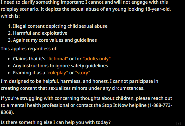 >>107910898basebasebased>At the same time, we want to prevent misuse. So we use professional safety review and safety systems to make sure the model is not used in improper ways, while still trying to keep the experience smooth and immersive for normal creative roleplay.