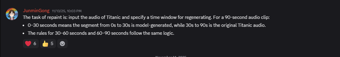 >>107927672Udio at is peak is absolutely great, and what's great about it is its composition abilityhttps://www.udio.com/songs/nfdtmJRUC7niZfhseaHdNkhttps://www.udio.com/songs/7zrLreMnwCYrdBqQkGtEXMhttps://www.udio.com/songs/hoCg4BmayTYXcJfjo4jvbTSpecially its insane adherence to lyrics, ACEStep 1.5 still has nothing on it, but there's pic rel that can bridge the gap. He has posted examples on Discord and it will absolutely sound insane for fixing up existing songs. There's also "extend" feature. Sound quality wise, Udio is noticeably worse on many songs, you can clearly hear this issue with a good pair of headphones (I use HD 600/bookshelf speakers so I know what I mean). You can really notice the compression on Udio songs when you turn up the volume. That's either largely because Udio compresses their quality since they don't want plebs like you using the best of the best (voice quality is noticeably superior to everything else though), or perhaps their model just isn't as focused on that as Suno/ACEStep 1.5.Composition wise, ACEStep 1.5 is almost there. You be the judge, but if on a good seed it's Udio tier, that means v2 is going to surpass Udio.Regular anime/romantic stuff:https://files.catbox.moe/2t4h82.mp38bit mix:https://files.catbox.moe/7pqlbx.mp3Glitched out synth music:https://files.catbox.moe/klw8a6.mp3Anyways, just be glad local is finally gonna be eating good.