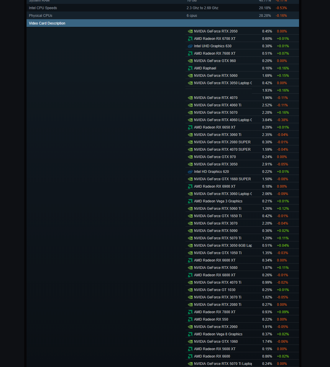 >>107945072nah, my 7800x3d sits around 5ghz whilst gaming. 5070ti boosts to 3000mhz with a small oc. thought it would be on this list>>107945042