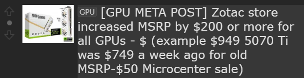 >>107946521he's mostly reporting that nvidia has stopped the OPP program meaning that msrp priced cards are no longer being subsidized by nvidia's cashbacks and they will stop existing