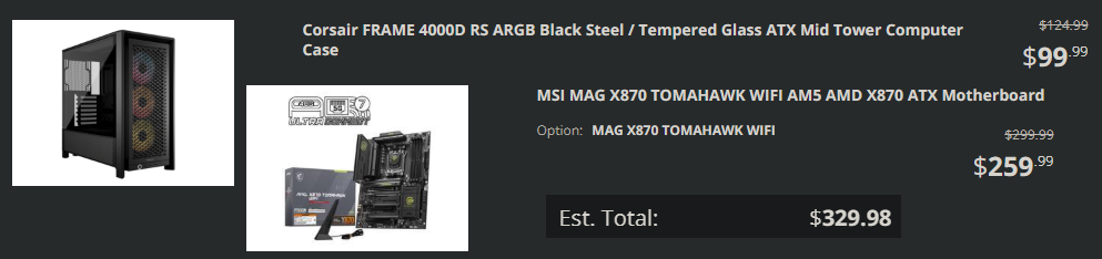 >>107945173The usual 9800x3d and 5070ti combo you've been hearing around these parts. Just need to decide on a case, heatsink, and psu.Might get a new keyboard as well. Don't need a new mouse but if I run with a different brand, using logitech right now, I might get a new mouse too.