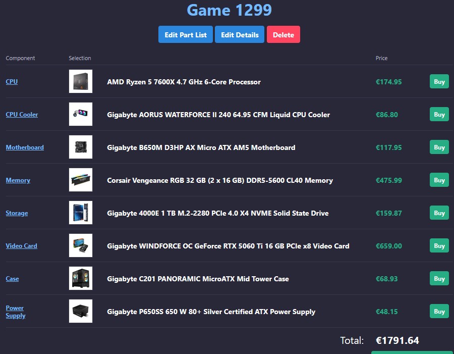 So i remade this prebuilt that they are selling on Game(stop) on Spain for 1299€Obviously is not worth the 1800€ that ends up on pcpp since for example the 5060TI is about 150€ more expensive than a similar model by MSI or the hard drive is about 40€ more expensive than similar 1tb units.Then it also has the problem of a shitty psu/mobo and the memory is 5600 40CL which obviously is not even close to optimal but seems fine.So while i dont think its worth the 1800€ of the pcpp mockup i made it seems to be punching above the 1300€ price tag isn't it?https://www.game.es/ordenadores/sobremesa/pc-gaming/gamepc-pro-gigabyte-edition-25r560tc-ryzen-5-7600x-rtx-5060-ti-16gb-32gb-1tb-ssd-ordenador-sobremesa-gaming/248089https://es.pcpartpicker.com/list/JYdd8QIm on a 3060TI AM4 rig that i can probably sell cheap or outright giveaway to a good friend for his daughter that is 14 or so and probably could use a dedicated computer on her room for school and shit instead of having to use the laptop the family has.So could i get any opinions on this? Thank you.