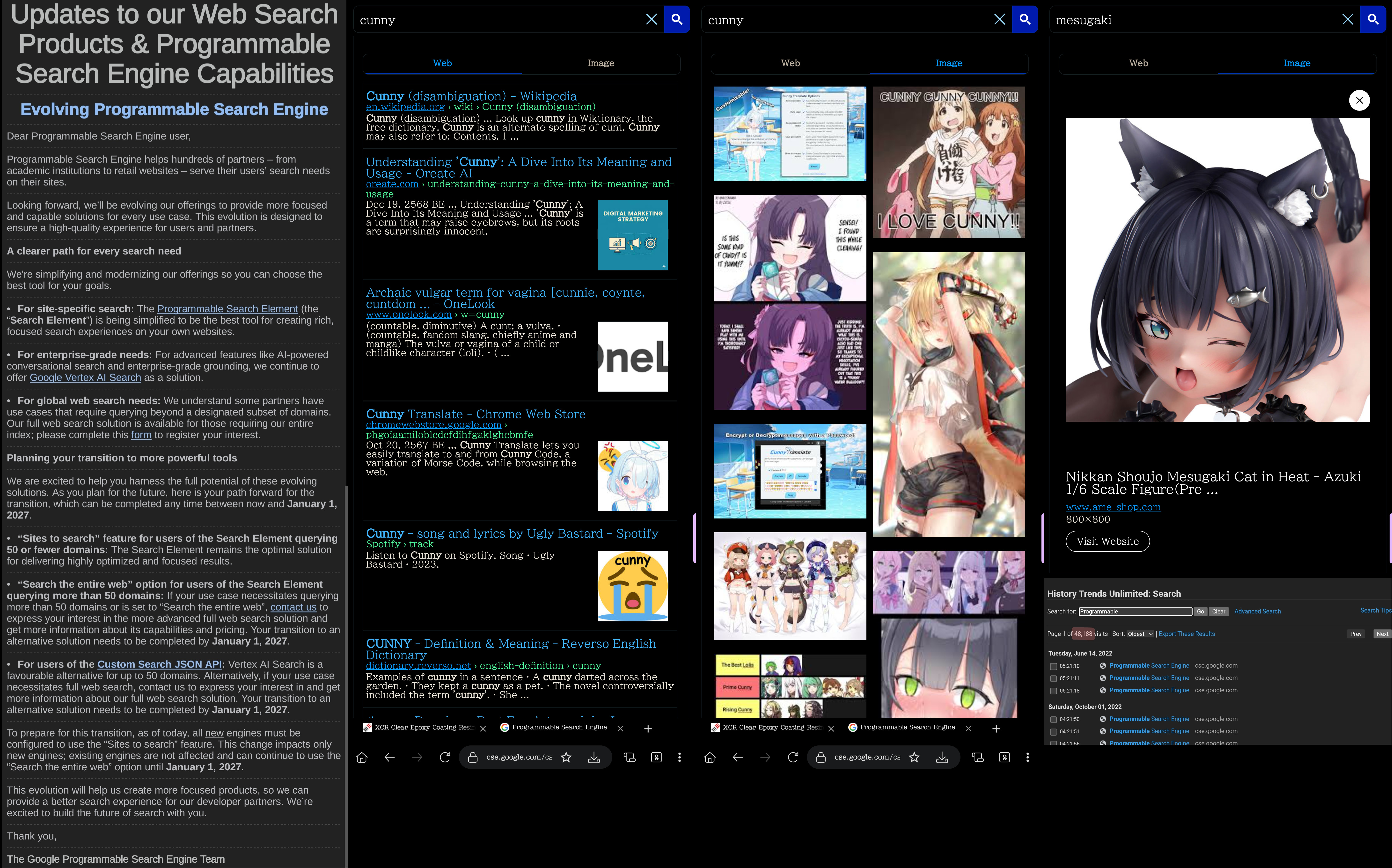 Jewgle's deprecating Google Custom Search Engine, affectionately known as "Google CSE" and rebranded in mid-2010s as "Programmable Search Engine", starting in 2027.