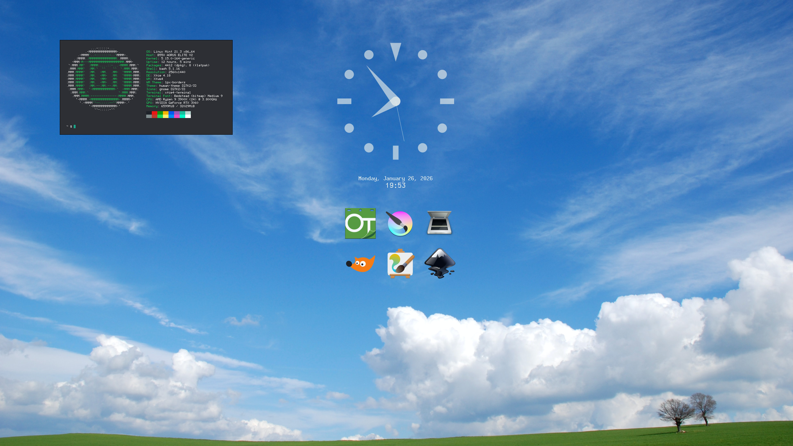 >>107977012>this is what desktop threads are for, feels fresh, and it's cinammon tooHey thanks. It's XFCE with the clock and icons being a Panel with transparent background. I use wmctrl at startup to forcibly have it behind every other window.