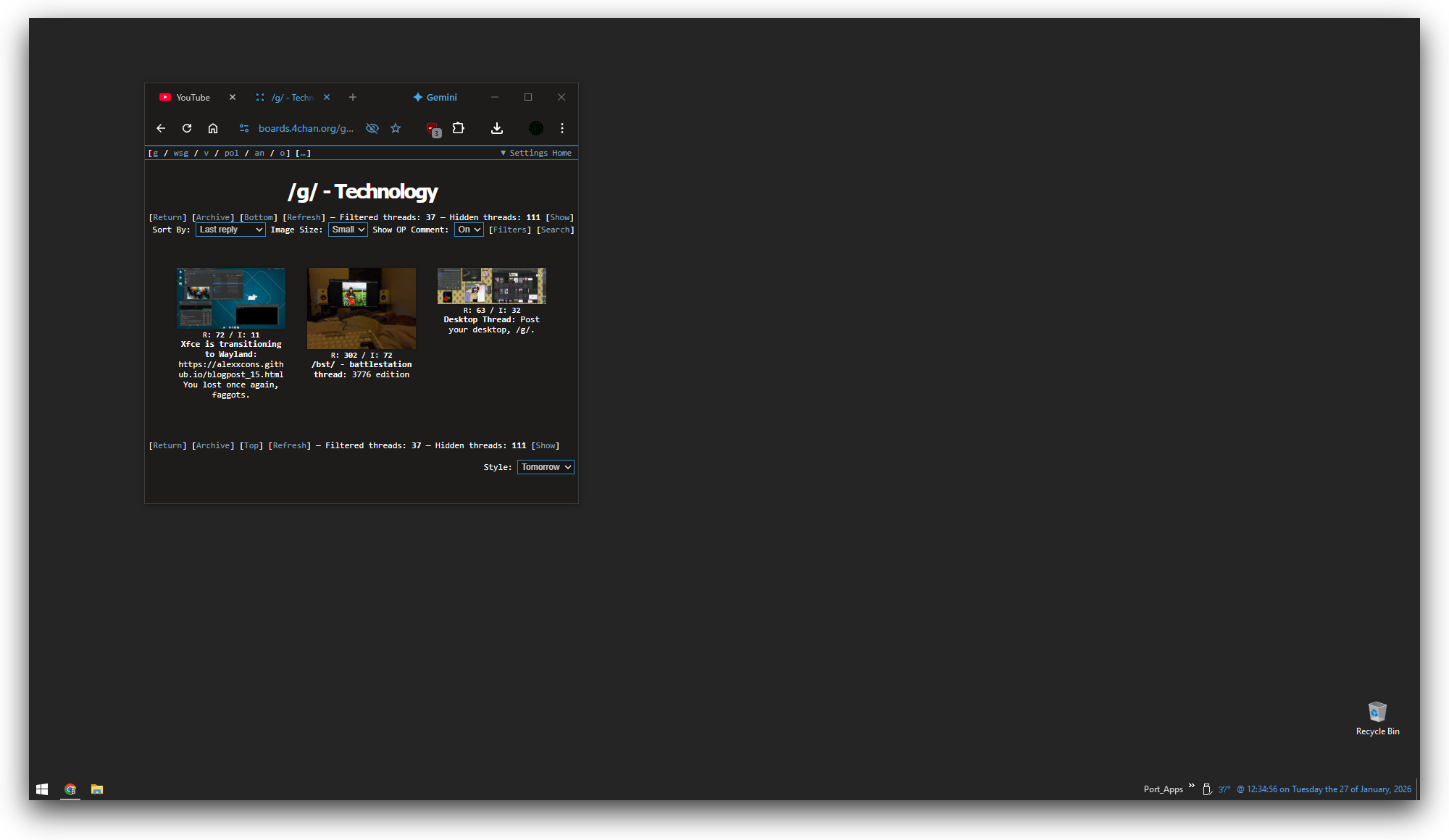 >>107975113Do you linuxtards actually browse the internet with their browser minimized like that? Lmao. Just full screen it like a normal person nigga