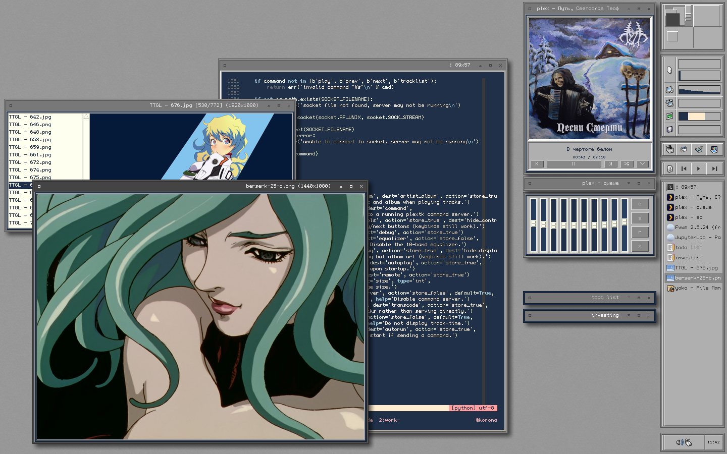>>107979901That is a really nice desktop, the best I've seen in a while. It's so hard to make a good light desktop. It reminds me of desktop screenshots that this one Russian guy used to post here. He did some really neat things with FVWM.