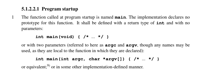 not her, and not to nitpick, but imo the wording seems to imply that the return value must always be an int, but that the parameters may be some other implementation defined API (e.g., you can pass envp)