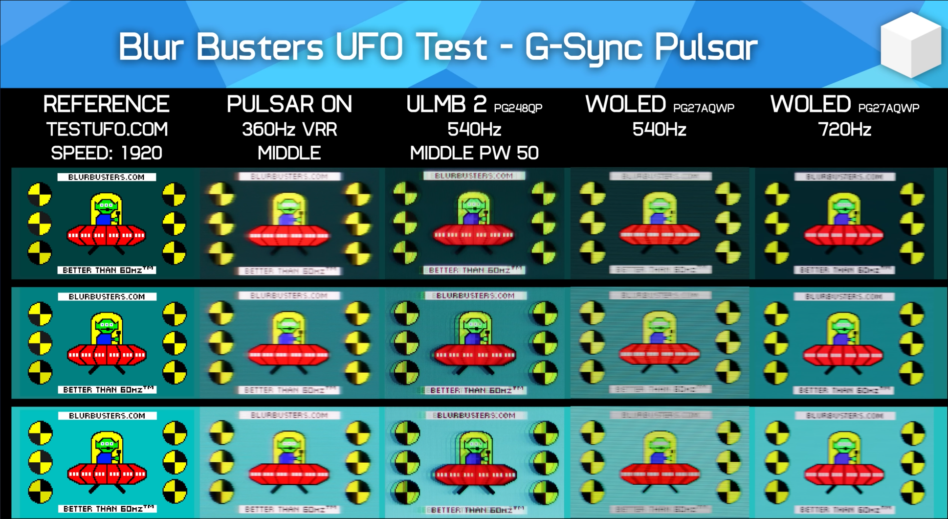 >>107983555wait which one is meant to be best in that image? The WOLED 720Hz? There are 720Hz OLEDs now? That has no ghostingOr is it the ULMB2 one? But that has ghosting Or is it the Pulsar one? But that's still blurry. Or wait, is it less blurry? I'm confused