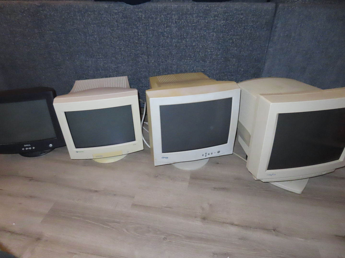 Well /g/, I am 1 for 4 on the CRT monitors I have Inherited from my uncle. The behemoth on the far right and my current heartbreak is a Cyber Vision C112. It's a 19" monitor and weighs about 60 pounds. Whenever I plug it into a VGA source, it makes a good awful sound for about 3 seconds and then completely cuts itself from power (at least visually with the front indicator light). Also the front power and menu buttons are non functional. The second from the right is an Optim 17". It will get a picture for a second then disconnect the next and then reconnect again. It will repeat this as long as it's hooked up to a source. To the left is a Gateway 15". This one actually works and came in it's original box, however I think my late grandmother must have used the crap out of it because this thing barely lights up. It's unusable during the daytime, well past its expected life span. The cool thing about this one though is that it was in its original box and it actually had its shipping sticker attached to it. It got delivered in February 2000 to my grandmother's house. And the last one to the far left is a Dell 15''. This is the only one that actually fully works and has a good picture on it. It's 1024x768, so not a very high resolution one. But it works and I got it for free, so I think I'll use it for playing around with legacy operating systems and games. Has anyone else worked on old CRTs in attempt to fix them yourself or know of good resources? I wouldn't know what I'm doing desu, but I figured if they're already broke it'd be cool just to look inside them. It's kind of heartbreaking especially with the bigger two. I'm also getting a lot more stuff from my uncle at some point soon, including his old gaming PC. It's kind of weird how much you learn about someone after they die. I was never close with him, but he seemed like an interesting guy. Hell, he probably posted on here for all I know. RIP