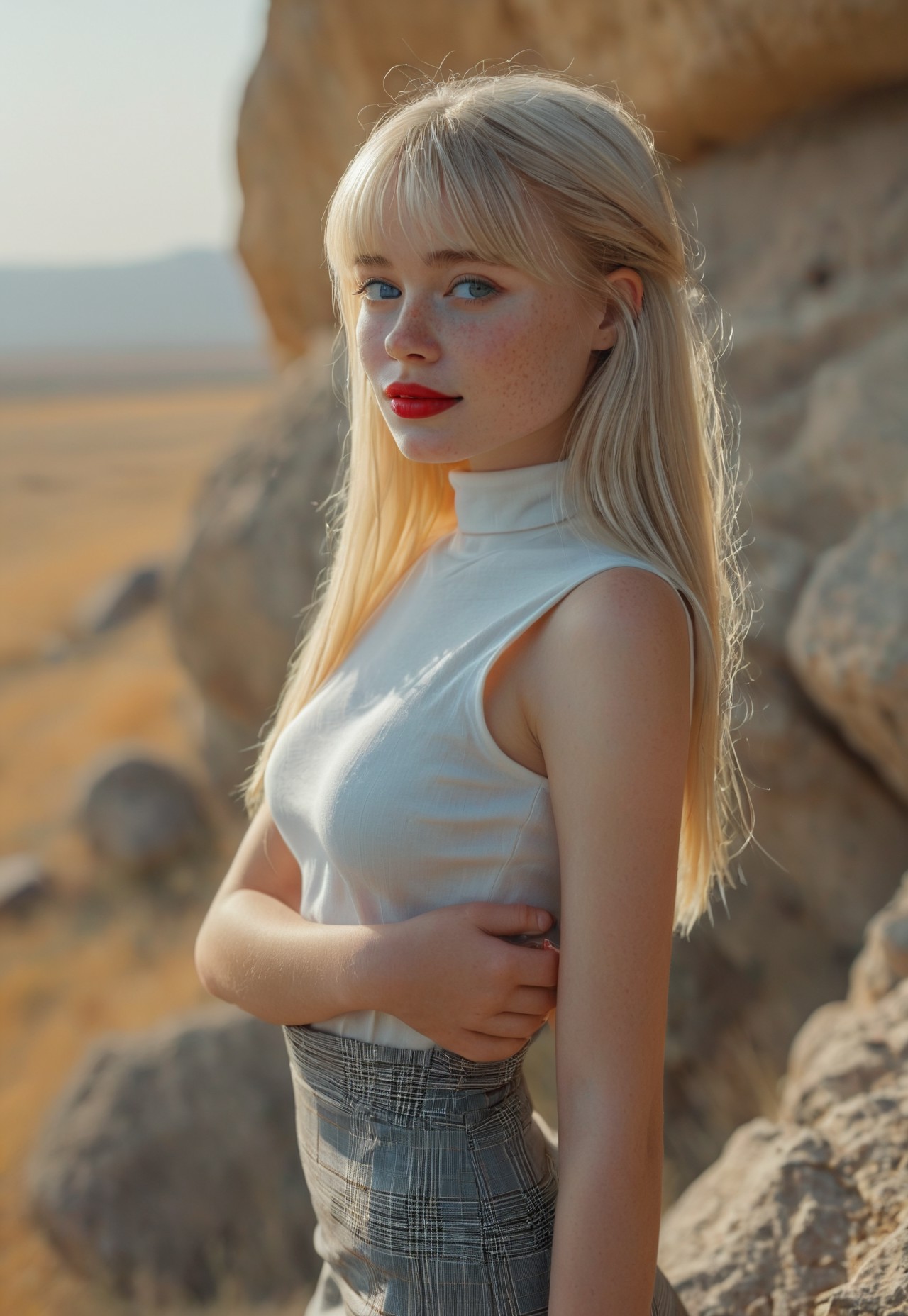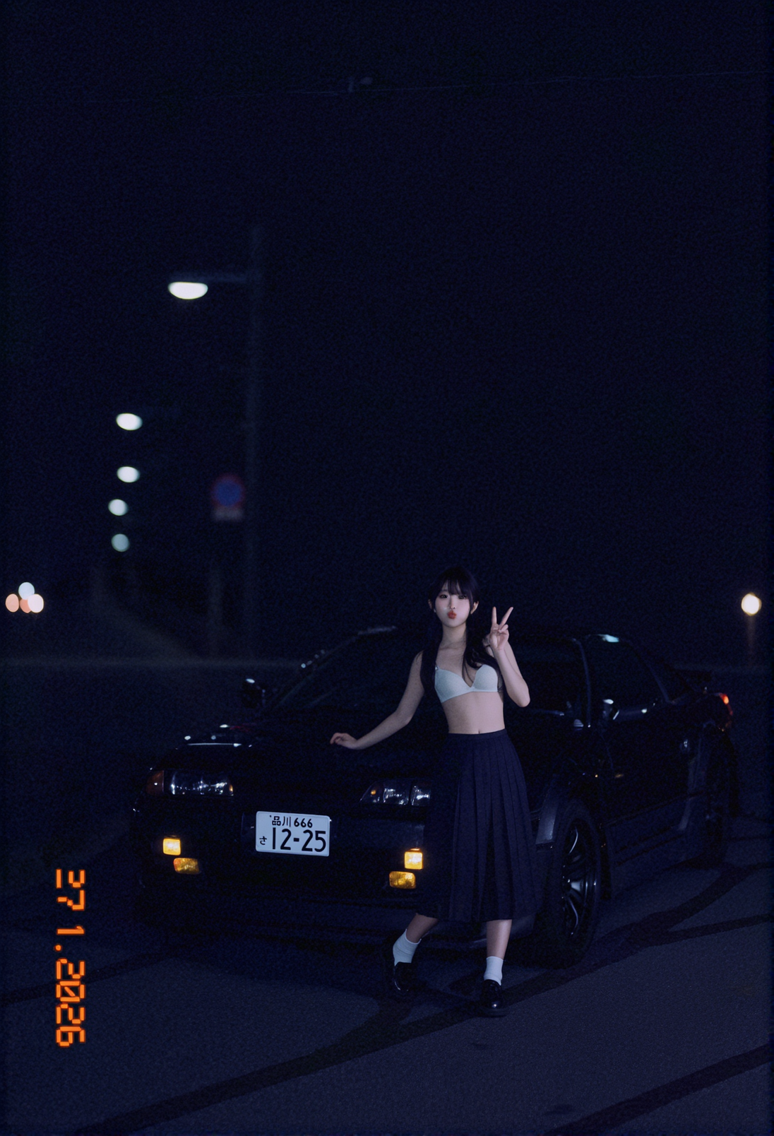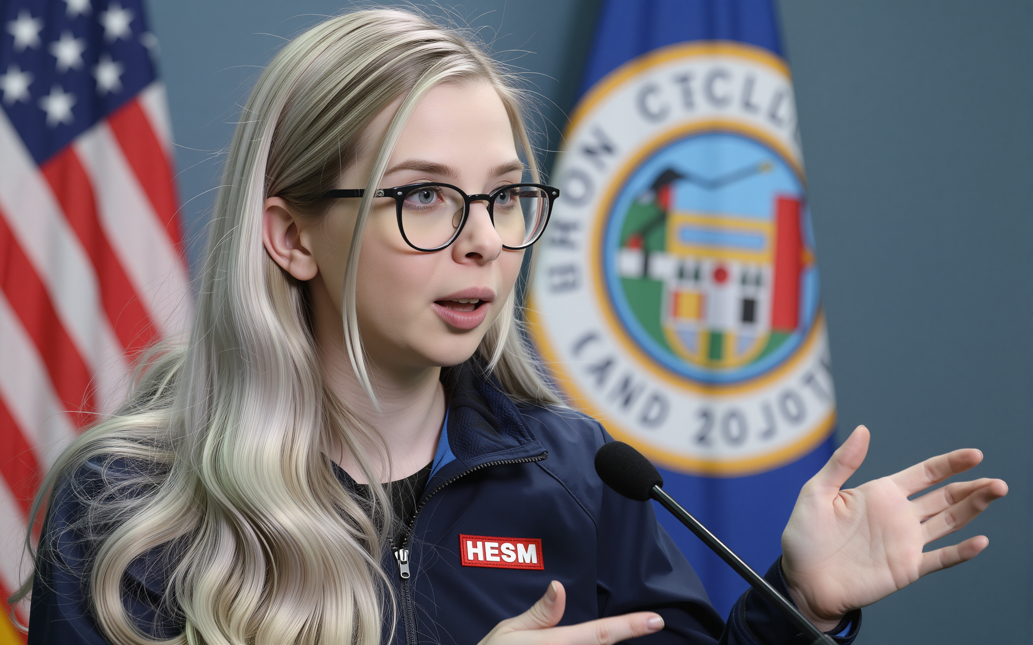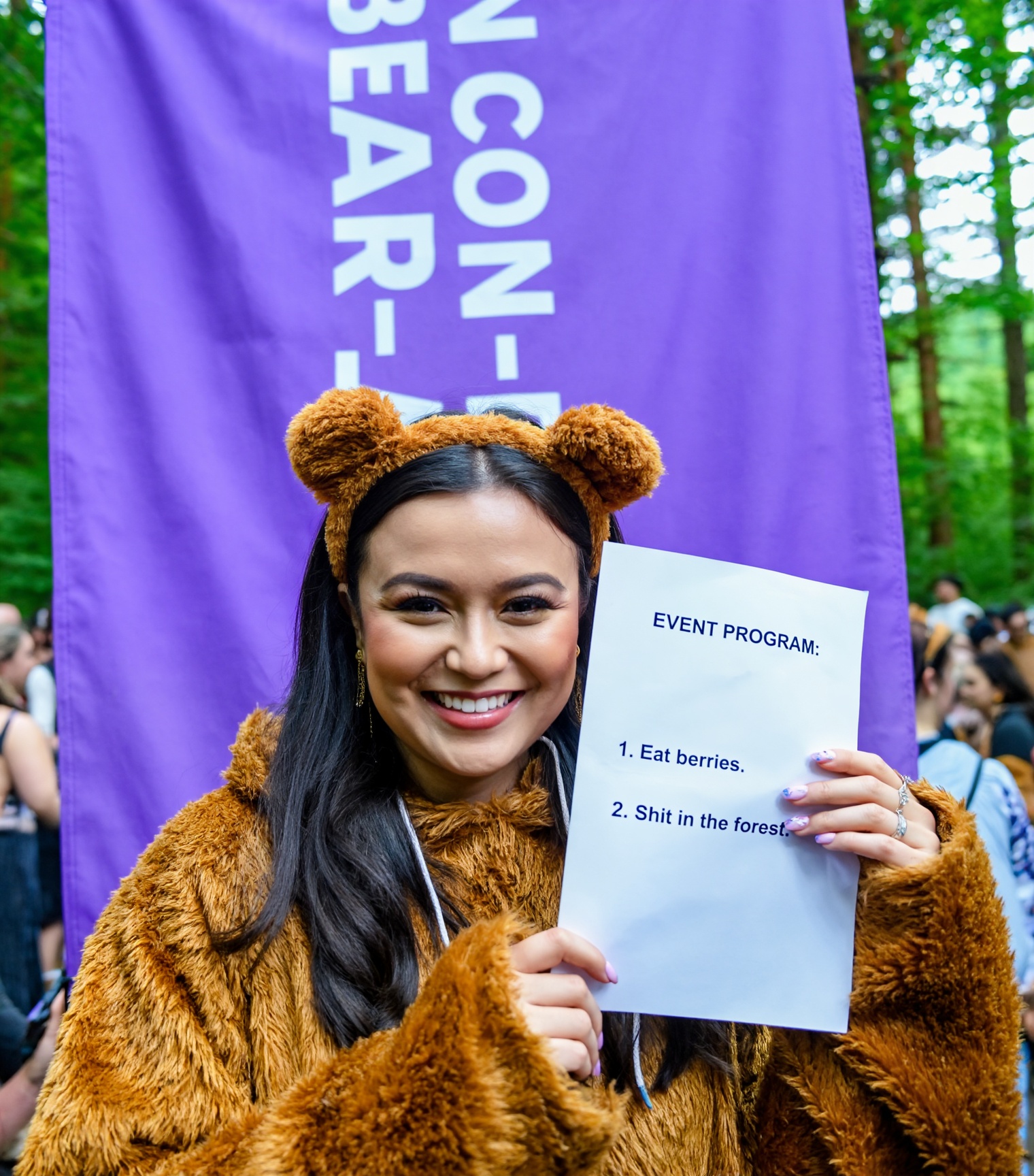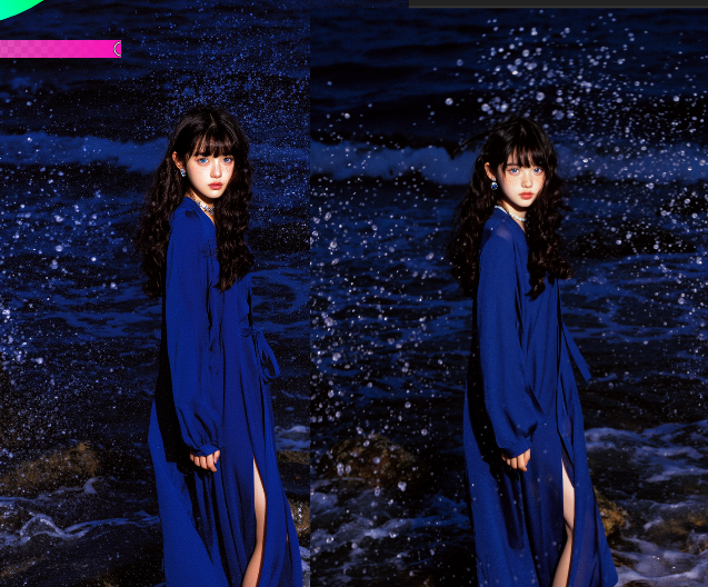 A photo of Billie Eilish. A photo showing a close-up of a young woman with fair, almost pale, fair skin and long, straight black hair. She has round large blue eyes, well-defined eyebrows, and long eyelashes. Her mouth is open wide, revealing a set of silver braces and a tongue that is partially visible. Her lips are slightly parted. Her right hand, with long, manicured nails painted in a light purple color, is gently holding her chin. The background is blurred but shows a black couch and a wooden floor. The lighting is bright and even, highlighting her facial features and the texture of her skin. The style of the photo is explicit and erotic. The overall atmosphere is intimate and provocative.