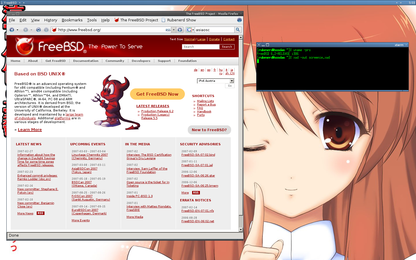 >>108000648Nice theme, how did you make Firefox look li->FreeBSD 6.2>latest news: 2007-02-27oh.