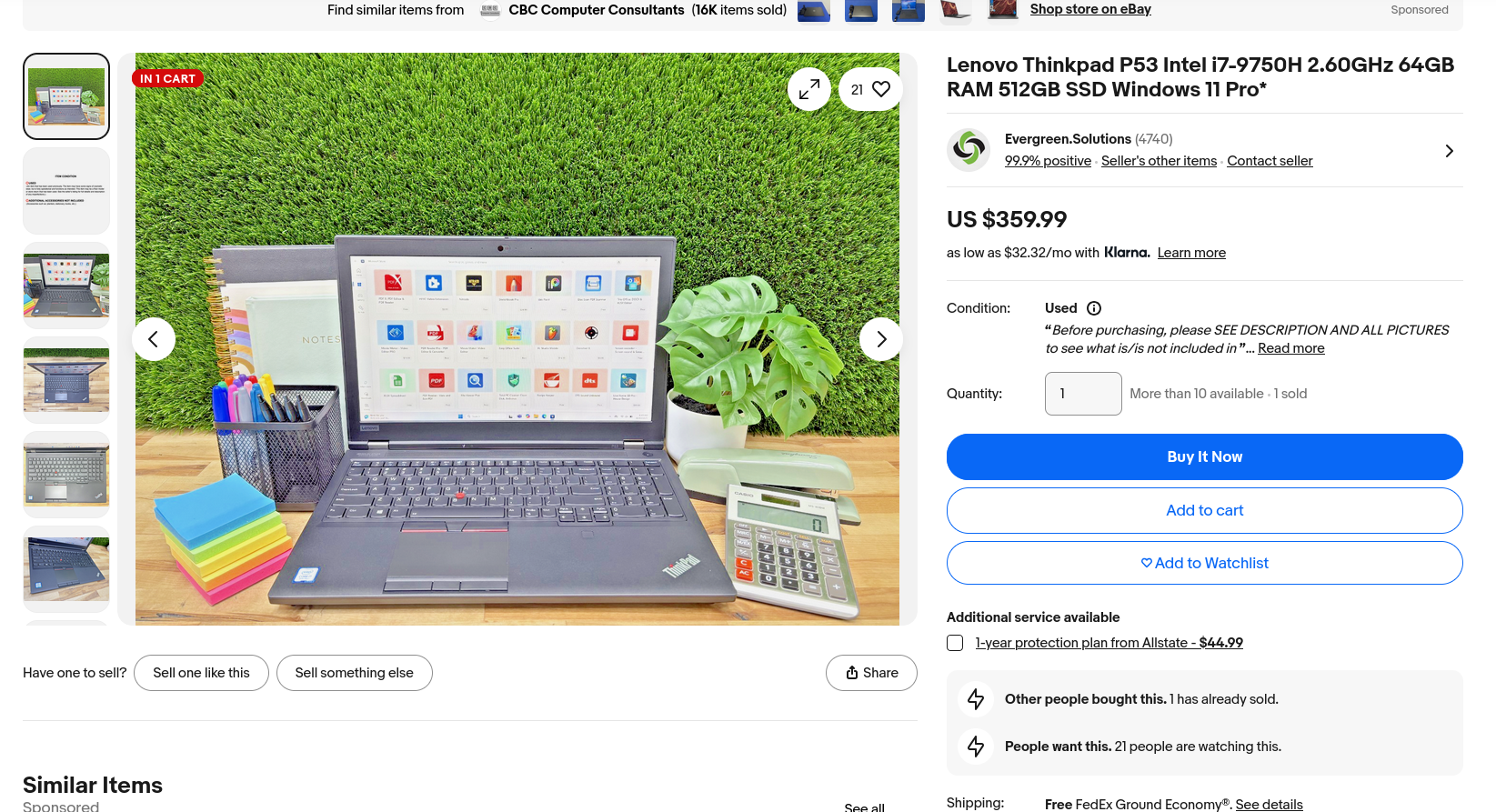 >>108005973Show full listing.Also, are you in the USA?Literal third option for searching "thinkpad p53" on ebay is a Intel i7-9750H 2.60GHz 64GB RAM 512GB SSD for $360 and a charger for it is like 60-80 if you get a pretty good condition one; pic related.
