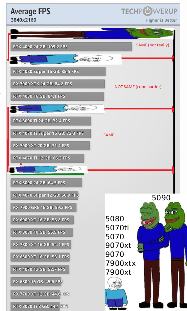 >>108007208MLID was one of the biggest RDNA3 cheerleaders, even he couldn't avoid the fact that something went wrong with that trash heap of a GPU generation.Retards bought it anyway because it's not an NVIDIA GPU.
