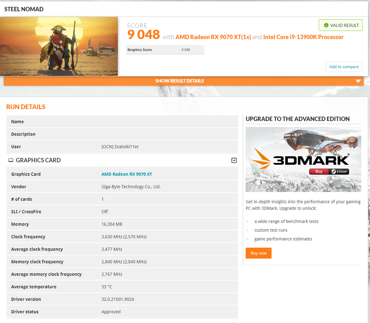 >>108006453>hwbot verifiedReal HWBot enthusiasts don't waste their time posting 9070 XT records on that website.That's not the highest Steel Nomad DX12 record either; The highest 3DMark validated record is held by a Gigabyte 9070 XT.https://www.3dmark.com/sn/6605127Let's also not pretend your shitbin + default vBIOS 9070 XT ASUS Prime is capable of hitting anywhere near those numbers.You already showed your score before (7826), not even a Legendary.