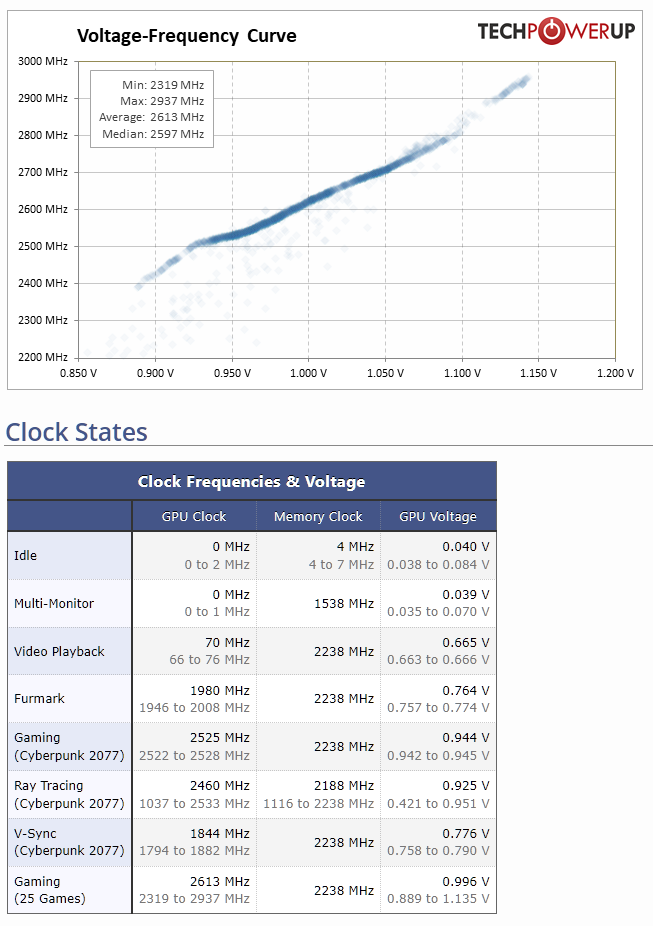 >>108006817Modern GPUs have a built-in dynamic boost algorithm that will push the core frequency as high as possible if there's enough thermal & power delivery headroom to do so.Pic is the boost range of the reference RX 7600; your XFX might boost a bit higher.https://www.techpowerup.com/review/amd-radeon-rx-7600/39.htmlAMD Radeon's boost algo is rather loose, so some people have to downlock the maximum boost frequency to prevent their GPUs from boosting too high (which cause crashes).
