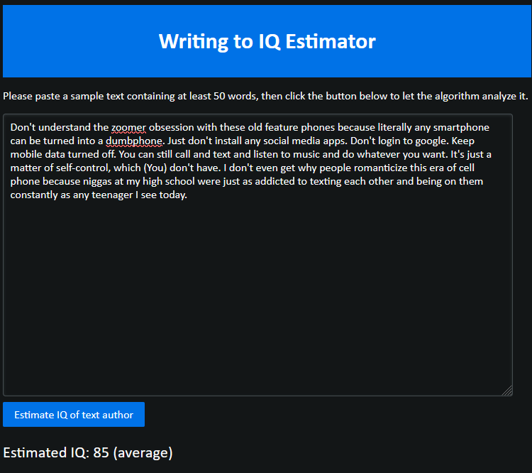 Don't understand the zoomer obsession with these old feature phones because literally any smartphone can be turned into a dumbphone. Just don't install any social media apps. Don't login to google. Keep mobile data turned off. You can still call and text and listen to music and do whatever you want. It's just a matter of self-control, which (You) don't have. I don't even get why people romanticize this era of cell phone because niggas at my high school were just as addicted to texting each other and being on them constantly as any teenager I see today.