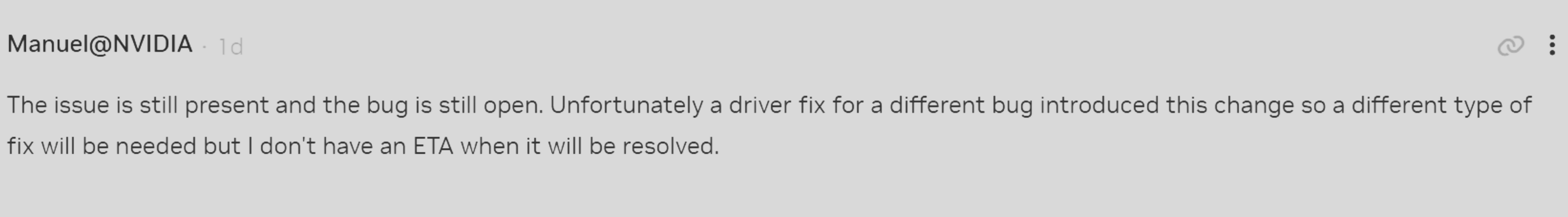 >>108012137they fixed it in most dx11/12 games though. if it's still happening to you, report it to nvidia so they can fix it. posting here won't change anything