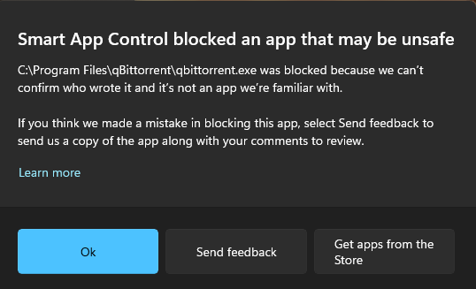 Yeah I dont understand the feature if reputation factor doesnt exist.>mpc hc update is blocked by the SAC until it isnt>qbittorrent exe with 400k+ downloads is unknown to microsoftyeah I had to turn it off
