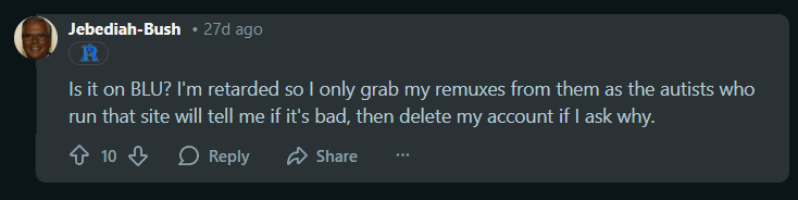 >>108017937nigga be grateful. We were the coons that made rarbg show some respect