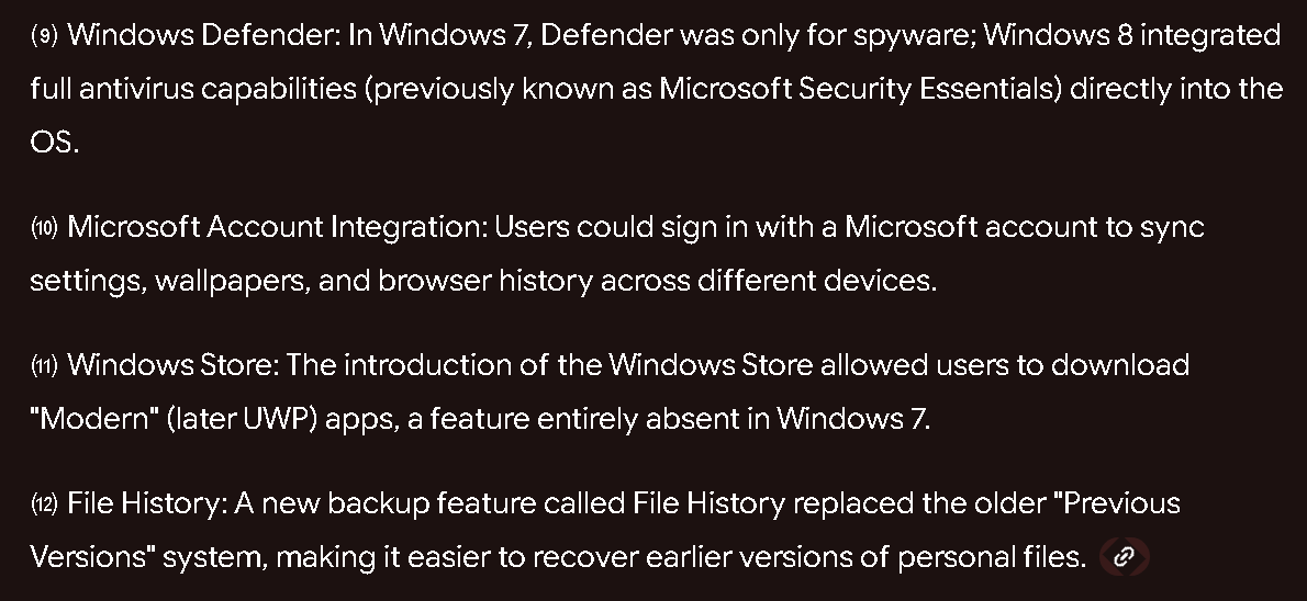 8 was a fish in aquarium - https://dirteam.com/sander/2009/01/13/windows-7-beta-fishing-for-clues/this is micro-retarded psyop, system was much locked for modding. list one feature