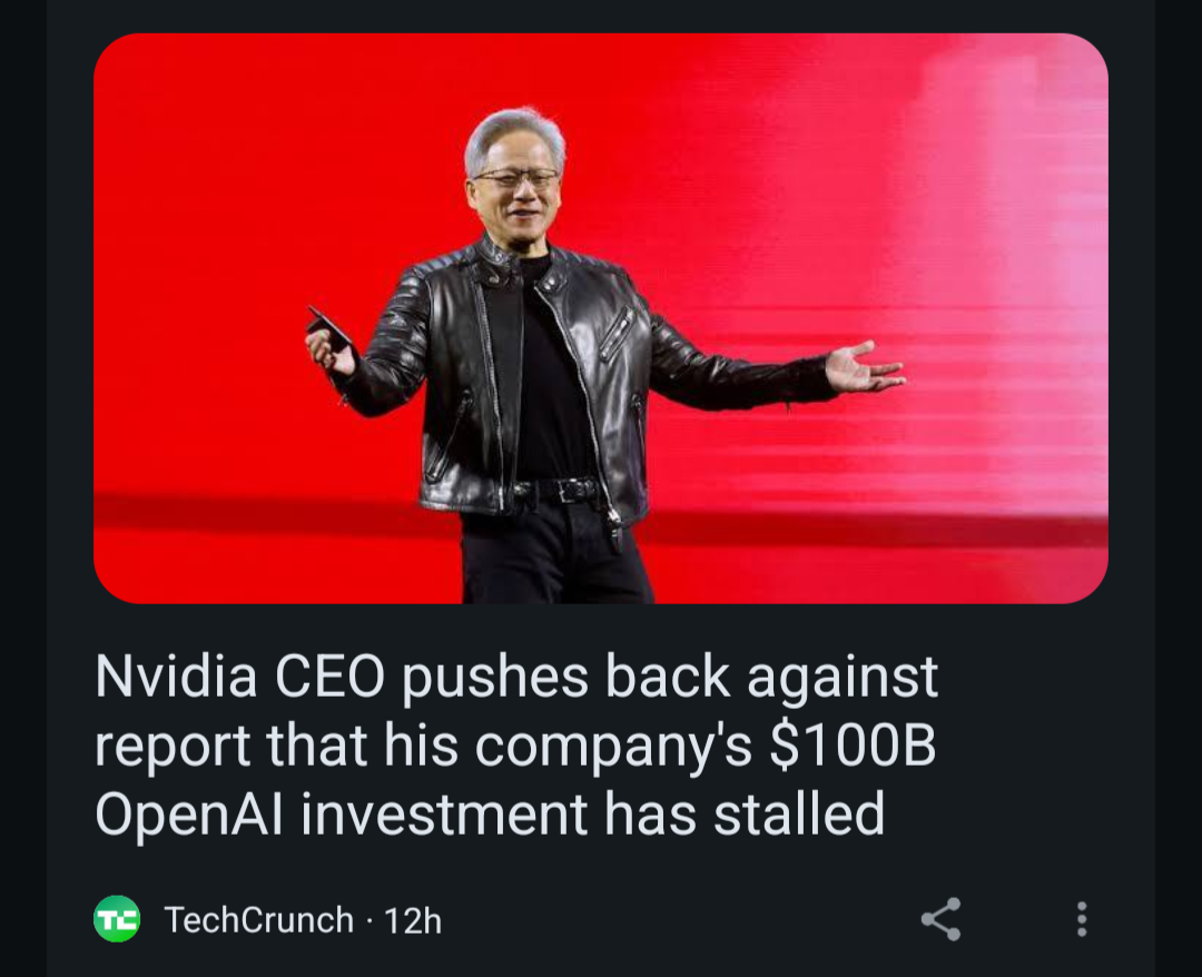 $100 billion should pay Open AIs bills for a whole year. Leather Man to the rescue