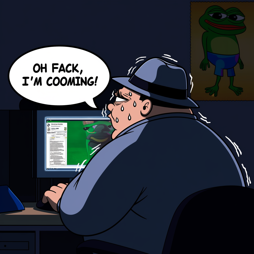 >>108031583```western comics \(style\), a cartoon of an overweight nerdy man wearing a fedora and sweating and shaking as he sits at a desk in his darkened bedroom and stares at his computer monitor with a deranged expression on his face. The computer monitor is facing away from the viewer and seen from behind. There is a pepe the frog poster on the wall behind the man. A speech bubble coming directly from the man's mouth reads "OH FACK, I'M COOOMING!"```Doesn't quite get the stated viewpoint of the viewer correct but everything else is spot on, and it got the text correct first shot. NetaYume could do text but it was WAY less consistent at it.