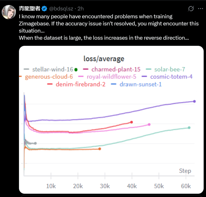 >>108032023Unironically this. The stabilized/averaged training loss will NEVER increase if you're training the model correctly (validation loss is a different story obviously). I don't know wtf people are doing to fuck up Z training so bad.