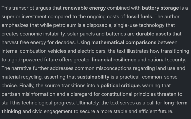 Someone give me a QRD on the video. Is he not happy that renewables are already getting billions of tax payer subsidies? Does he want to make everyone adopt the technology at gunpoint?