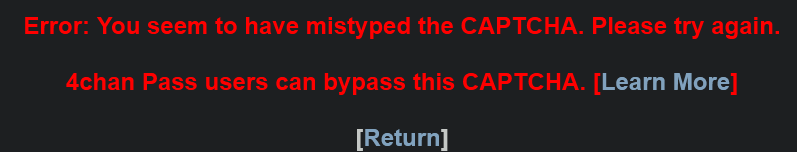 >>108037308I get the same shit some days. Like 4chan refuses to let me post anywhere using captcha malfunction as their weapon.
