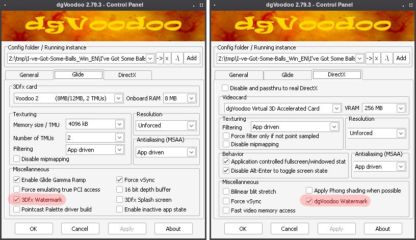 >>108058118lutris is just built for linux where we have environment variables for this kind of shit.anyways it's probably still possible to do it by overriding dlls and using your own dgvoodoo instead of the one from lutris.i'd have an easier time just running raw wine for this.